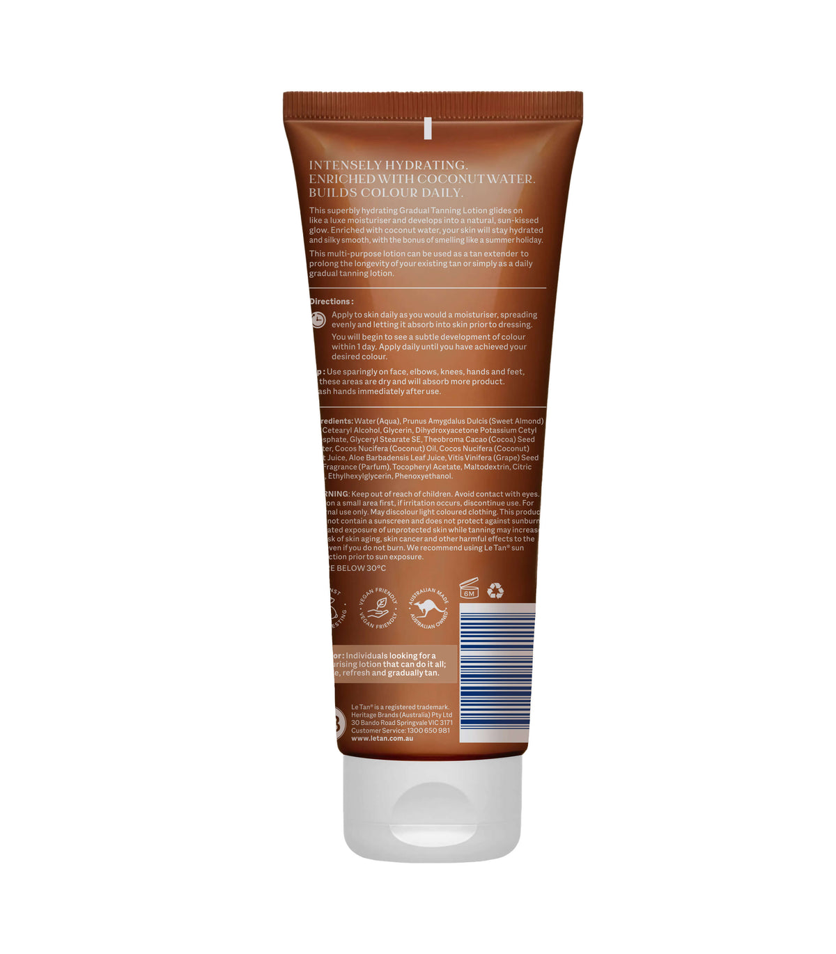 Our GRADUAL Tanning Lotion is created with a caramel base for all skin tones and is enriched with coconut water to intensely hydrate dry winter skin. Build colour gradually by applying this lotion daily to reach and maintain your desired glow.