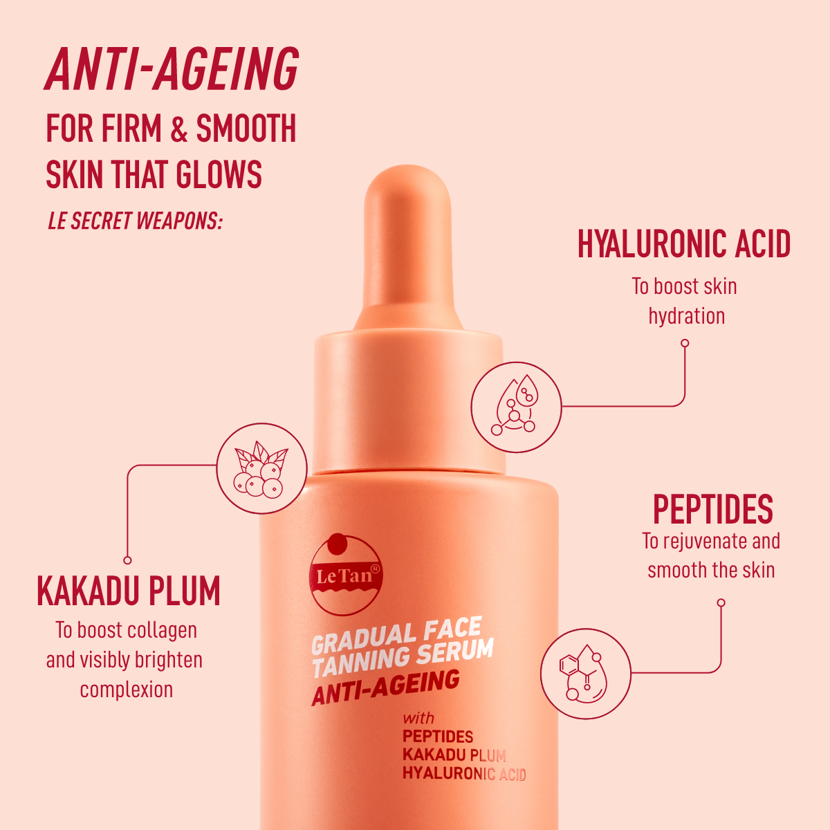 This Gradual Face Tanning Serum is infused with active skincare ingredients, working double time to provide benefits to your skin below the glow.