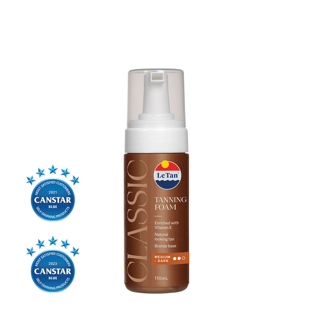TAN - For bronzed glowing skin, use our Medium/Dark foam from the Classics range. The formula is enriched with Vitamin E to ensure your skin remains hydrated and silky smooth with every application.