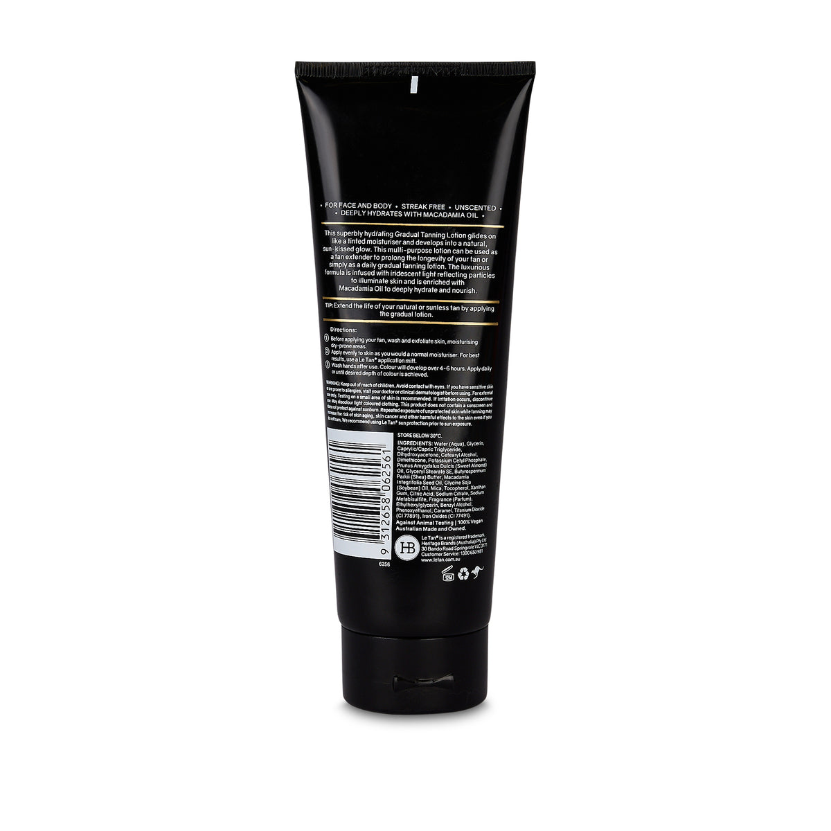 Like sunshine in a bottle - this superbly hydrating Gradual Tanning Lotion glides on like a tinted moisturiser and develops into a natural, sun-kissed glow. This multi-purpose lotion can be used as a tan extender to prolong the longevity of your tan or simply as a daily gradual tanning lotion. The luxurious formula is infused with iridescent light reflecting particles to illuminate skin and is enriched with Macadamia Oil to deeply hydrate and nourish skin.