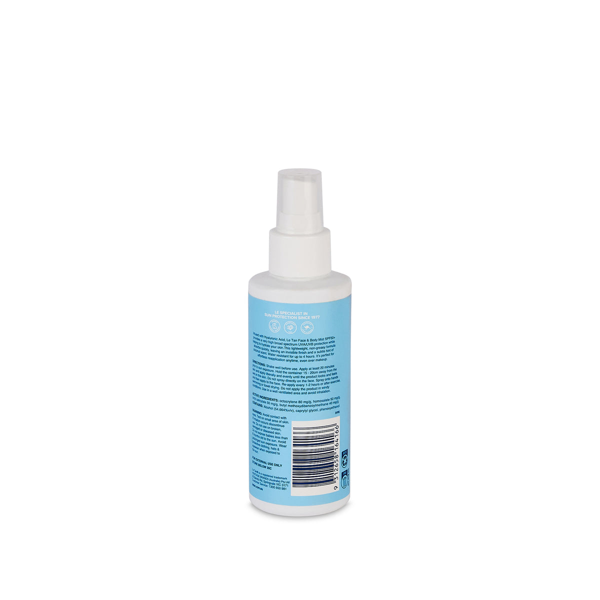 Infused with Hyaluronic Acid, Le Tan Reapplication Face & Body Mist SPF50+ provides a very high broad spectrum UVA/UVB protection while helping to hydrate your skin. This lightweight, non-greasy formula absorbs quickly, leaving an invisible finish and a subtle hint of coconut scent. Water resistant for up to 4 hours. It's perfect for effortless reapplication anything, even over makeup.